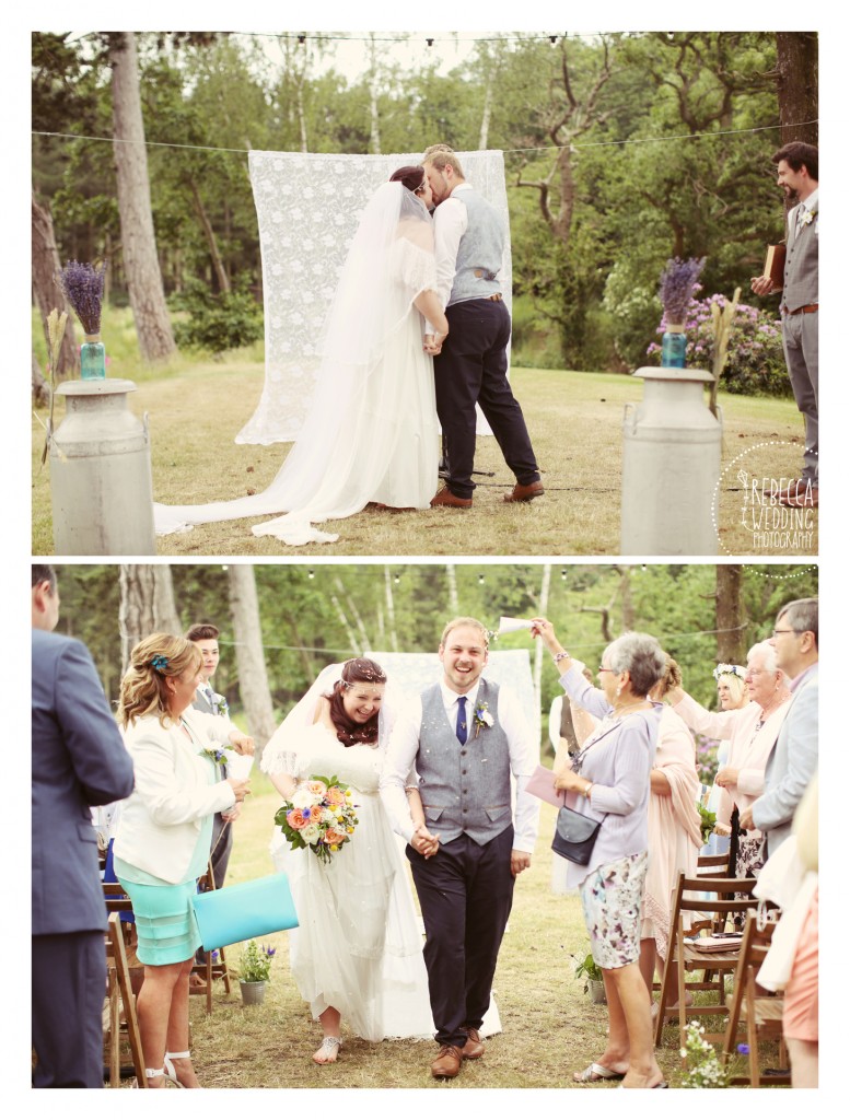 Martyn & Jade had a blessing beside the lake and had created a shabby chic styled walkway. Jade left her guests guessing about her outfit a little longer as they had created a door for the big entrance. Once through the door the guests could be seen seated on wooden chairs and there were relaxed flower arrangements dotted around in all sorts of vintage jugs but my personal favourite was the two large milk urns – probably due to nostalgia as it’s a nice nod to the dairy farm we once were.